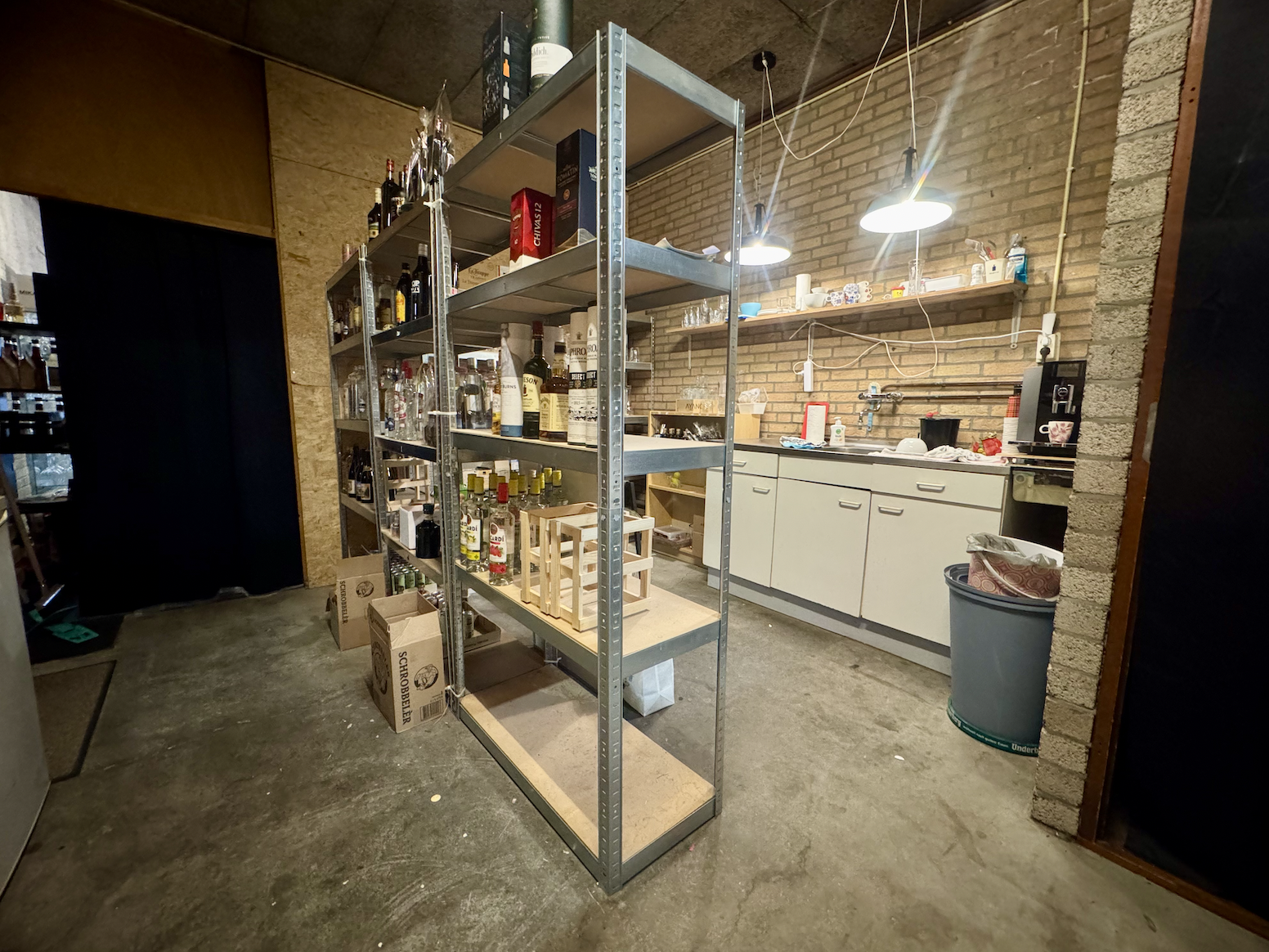 Het pand biedt voldoende opbergruimte, beschikt over een keukenblokje met spoelbak en apart toilet.